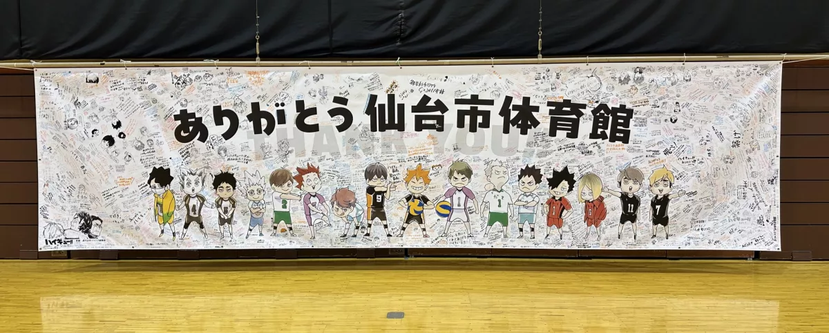 仙台市體育館 Kamei Arena Sendai(カメイアリーナ仙台)將於 5 月 21 日起進行大型改建工程,預計需要兩年時間完成。而一直與場地深深緊扣的古舘春一「排球少年 !!」系列,有關方面特別舉辦了館內開放參觀活動,讓市民及讀者們入內參觀,預備了大型活動橫額及各校的打氣橫額,更邀請了古舘老師秘密地在體育館內各處繪畫角色塗鴉,一共 16 個地方,讓參觀者慢慢發掘~