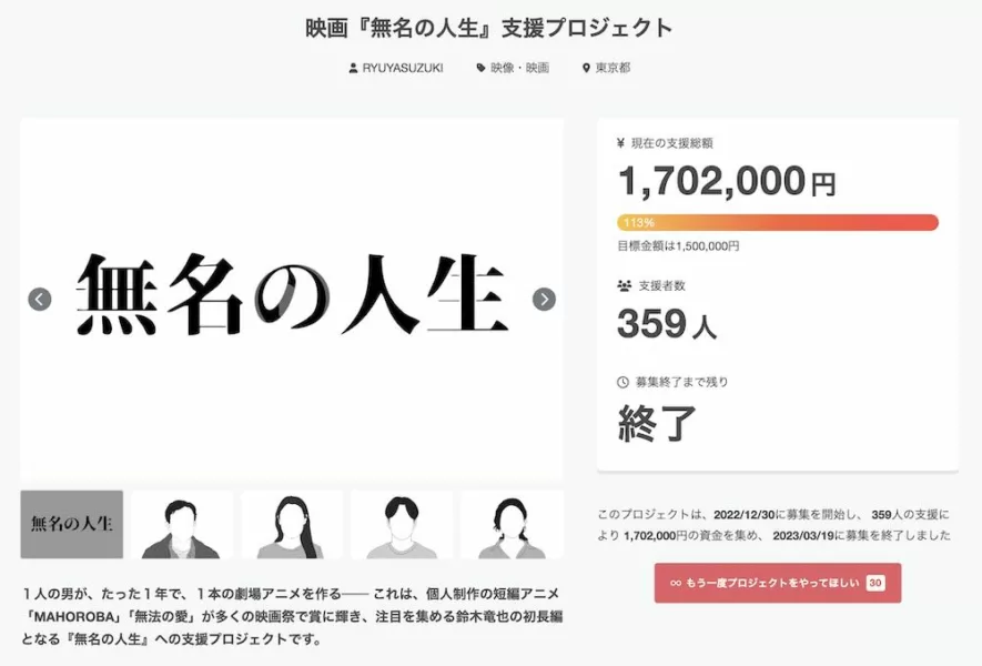 《無名的人生》眾籌網站 CAMPFIRE