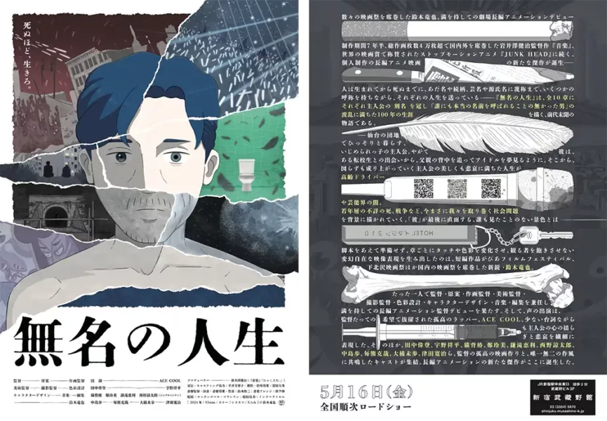 由日本動畫師鈴木竜也一人包辦原作、導演、編劇、作畫 / 美術 / 攝影監督、角色 & 色彩設計及配樂,耗時一年半製作的動畫電影《無名的人生》,由同樣獨立製作《音樂》的動畫導演岩井澤健治擔任製作人,可謂獨立動畫界強強聯手!