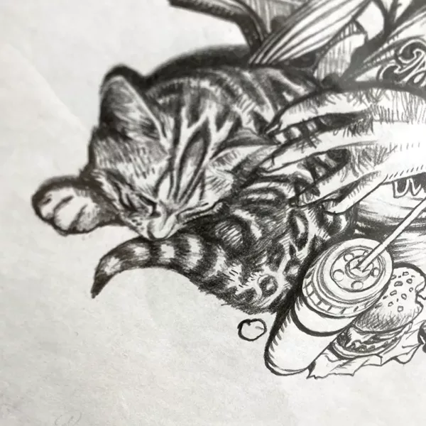 多年來的模式看來沒太大改變,草圖 > 鉛筆畫 > 掃描網點組合 > 絲印各種顏色組合,但他筆下的角色,不論在體態到衣物光影的互動,到整幅畫作的佈局和用色,各種細節等,看起來愈加有趣。展覽有展出多幅鉛筆真跡,完成度很高,值得慢慢駐足觀賞。