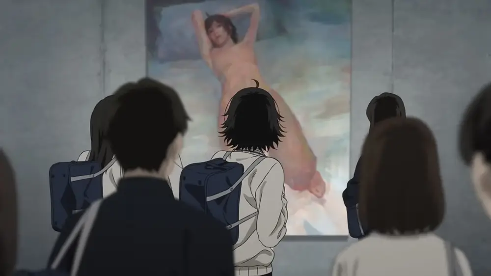 *漫畫中第一頁的裸體畫彩頁,中文版只有黑白版本,所以終於在動畫版看到了彩色版,威力非常巨大(合十)